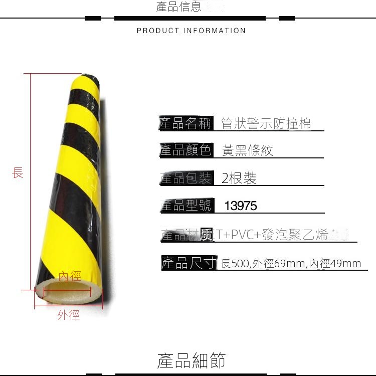 Buy 管狀警告防撞棉(2支裝)Φ69*500mm 管道包裹防撞棉 黃黑警示管狀防撞棉 管道防撞棉 13975 - 黃黑條紋69x49x500mm price in outletexpress .com Hong Kong.In promotion and sale.