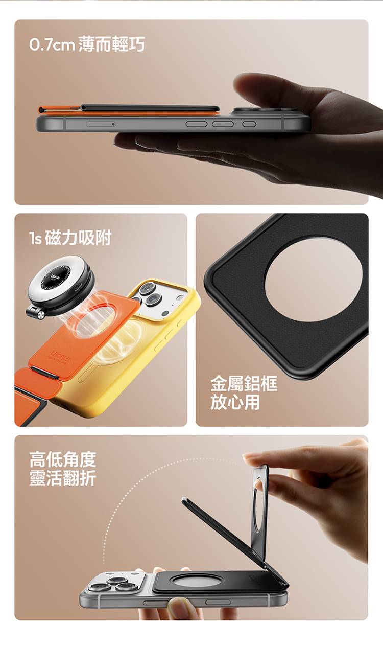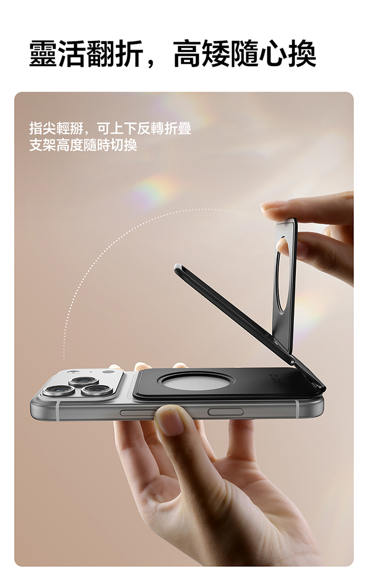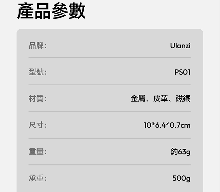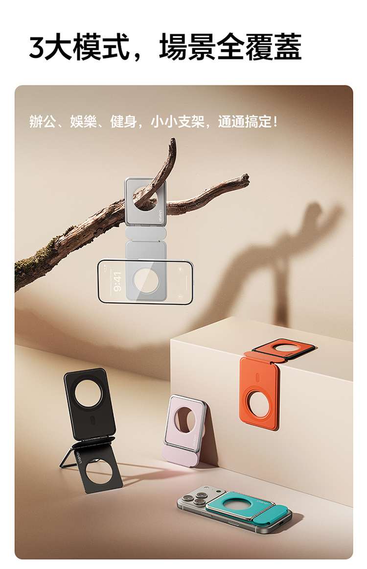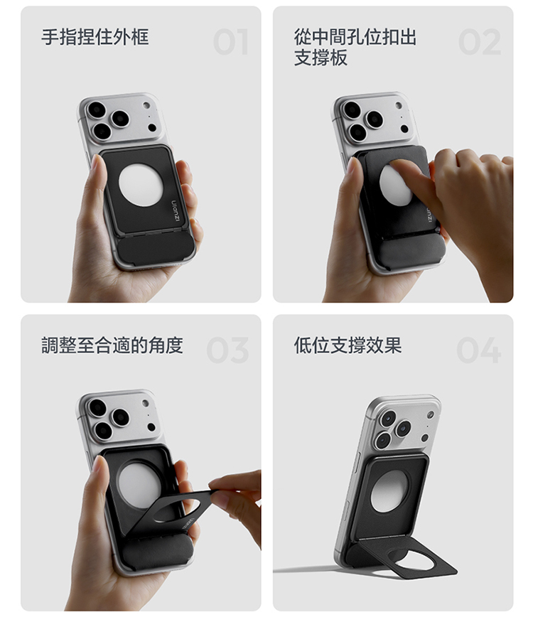 ULANZI PS01 MagSnap 磁吸支架(黑色)是主打強磁吸附的實用好物!採用 MagSnap 磁吸技術,吸附力強勁,貼合設備後穩固不晃,有效杜絕滑落隱憂。適合多種支援 MagSafe 的設備,對位精準,一吸即合,安裝無需複雜操作。機身設計輕薄便攜,體積小巧不佔地,日常收納、通勤攜帶都超方便。黑色外觀簡約大氣,百搭各類使用場景,不管是桌面辦公、居家娛樂,或是戶外臨時使用,都能輕鬆 hold 住。優質材質打造,做工紮實耐用,既能滿足設備固定需求,又能為使用體驗加分,是提升設備實用性的必備配件!
