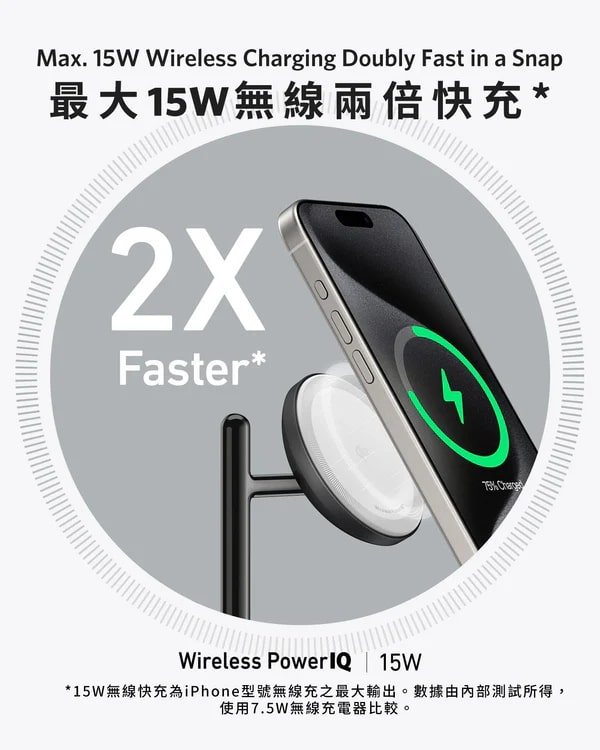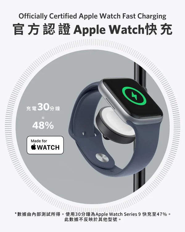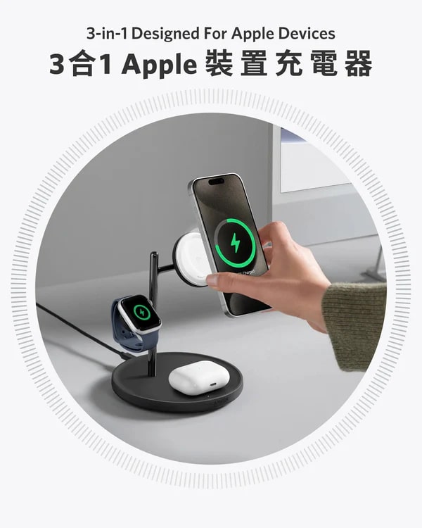 Anker 這款三合一無線充電器獲得 Qi2 及 MFW 官方認證,相容於 MagSafe,專為 Apple 裝置打造。其搭載 Wireless PowerIQ 技術與多層散熱設計,iPhone 最大可享 15W 快充,0% 充至 50% 僅需 44 分鐘,速度是 7.5W 充電器的兩倍。 30 分鐘內可為 Apple Watch Series9 快充至 47%,還能同時為 iPhone、AirPods 及各類無線充電耳機供電,總輸出為 25W。樹型省位美學設計適合床頭、客廳等多個場景,耳機充電板採用防滑材質。 ActiveShield 2.0 系統每日超 300 萬次溫度監測,兼顧快充與安全,搭配 40W USB-C 充電器及 1.5 公尺充電線,使用更便利。