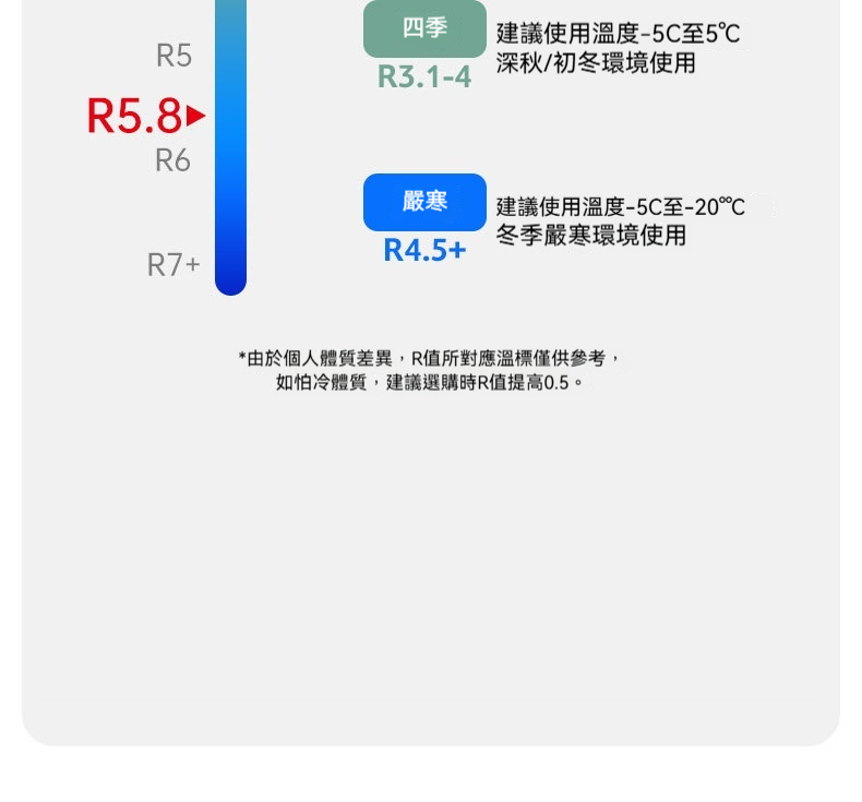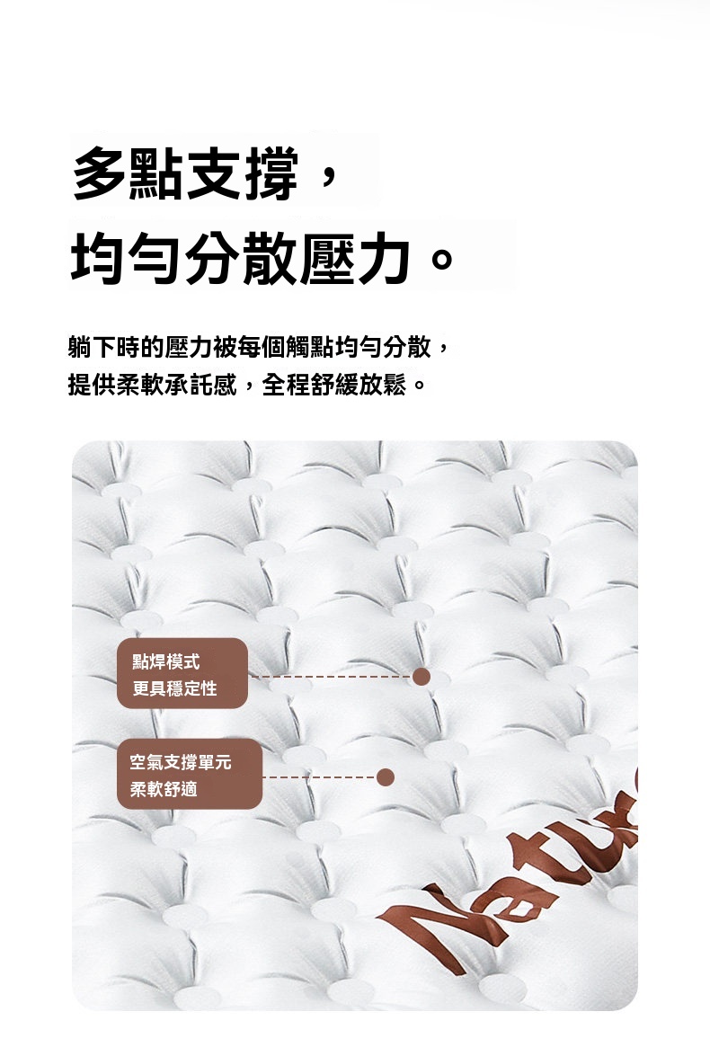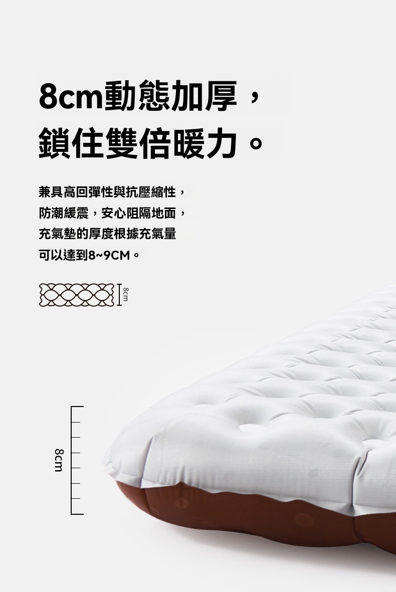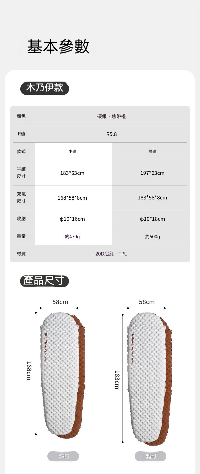 Naturehike 途野 R5.8 超輕量充氣床墊是專為嚴苛環境設計的專業級睡眠裝備。其核心在於高達5.8的R值與獨創的八層鎖溫結構,內含NKTR熱能反射層,能在-20℃的低溫同時,它實現了卓越的輕量化,收納小巧,是雪山攀登、冬季露營等寒冷環境下追求輕量與極致保暖的終極選擇。
