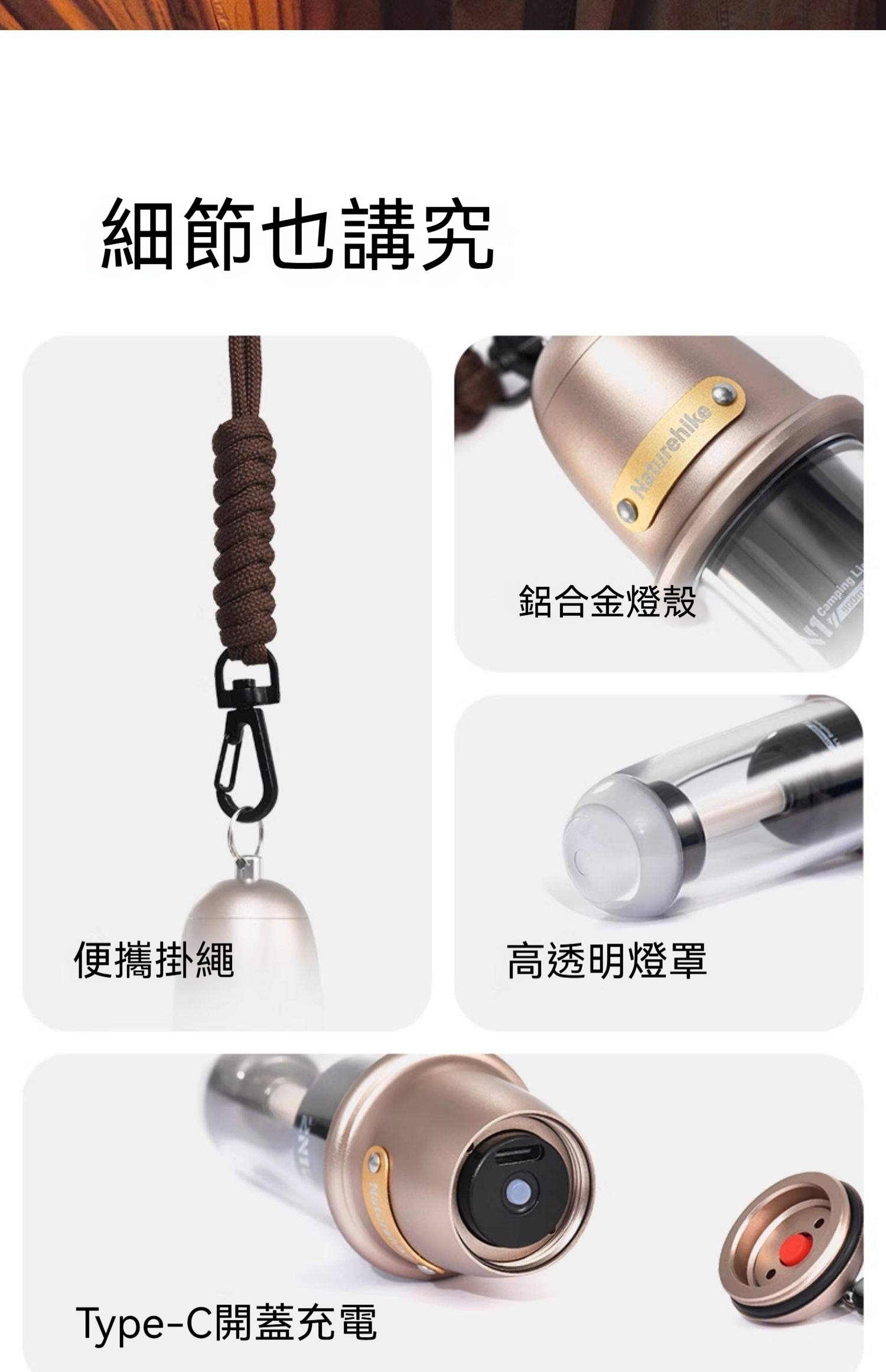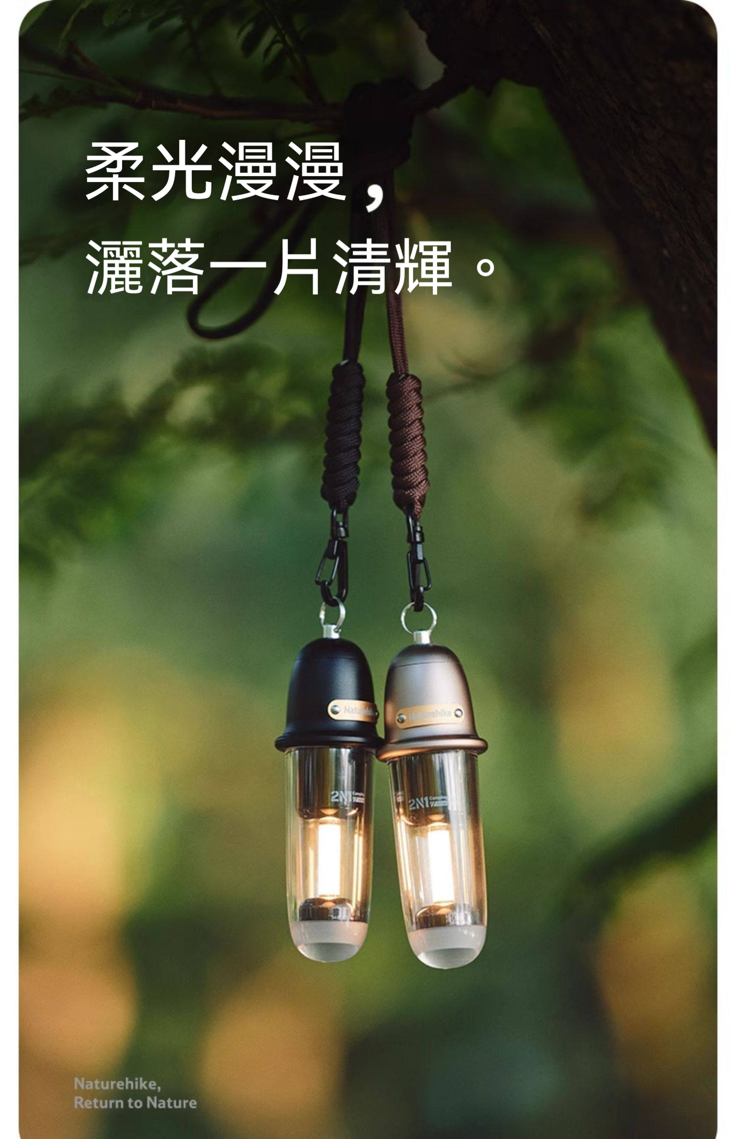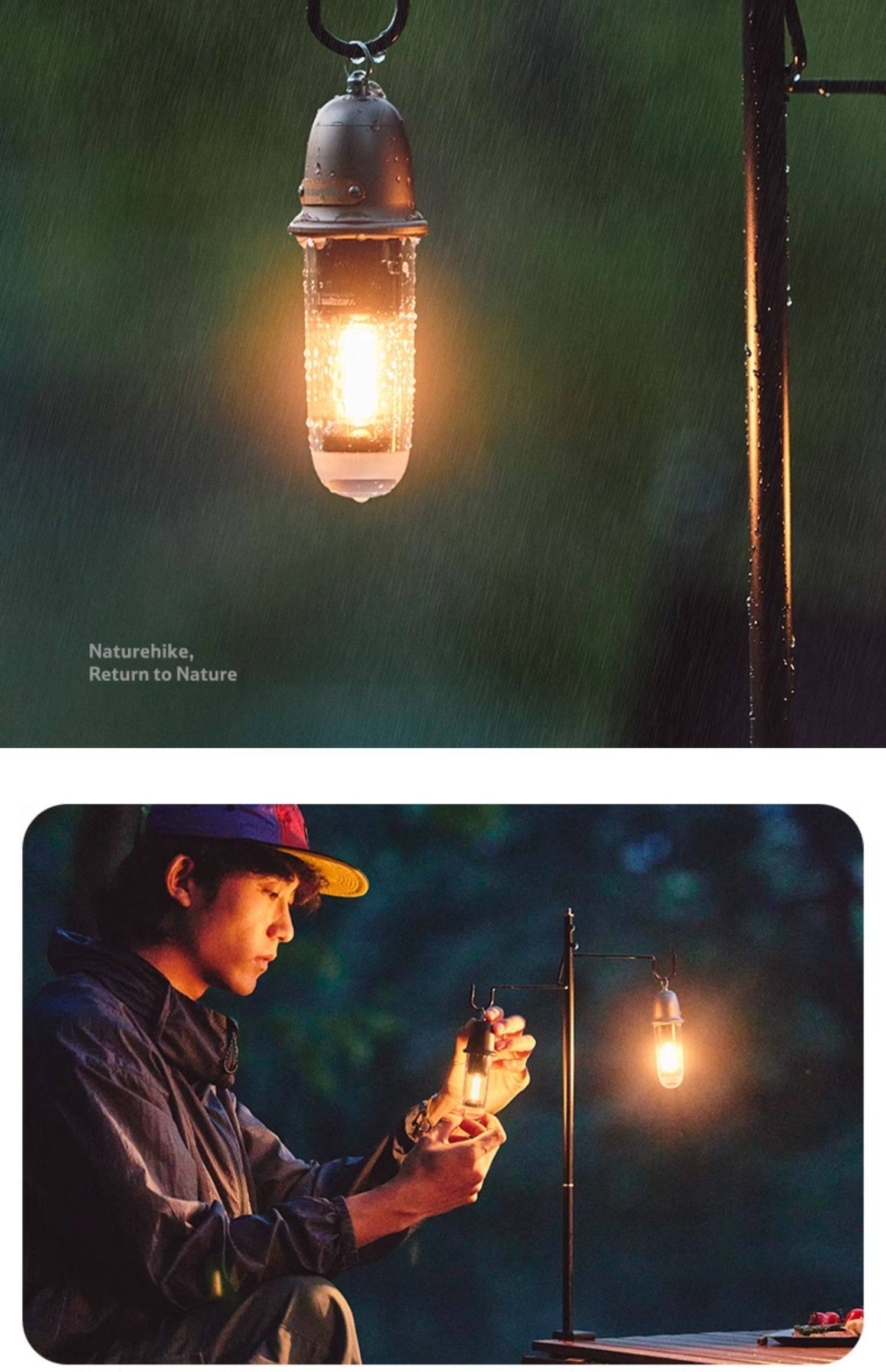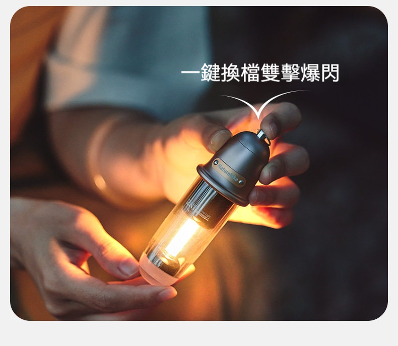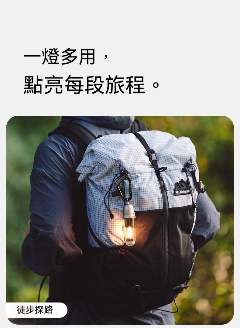 Naturehike 尋野 · 2N1戶外露營氛圍燈,是一款融合復古美學與實用功能的隨身照明工具。重量僅約104克,輕巧易攜。具備冷暖雙光源與多檔調節,可作為露營照明、徒步輔光或居家氛圍燈使用。採用金屬工藝機身,質感出眾,並支援Type-C充電與IPX4級防水,無論戶外旅程或室內點綴,皆能輕鬆營造溫暖光影氛圍。