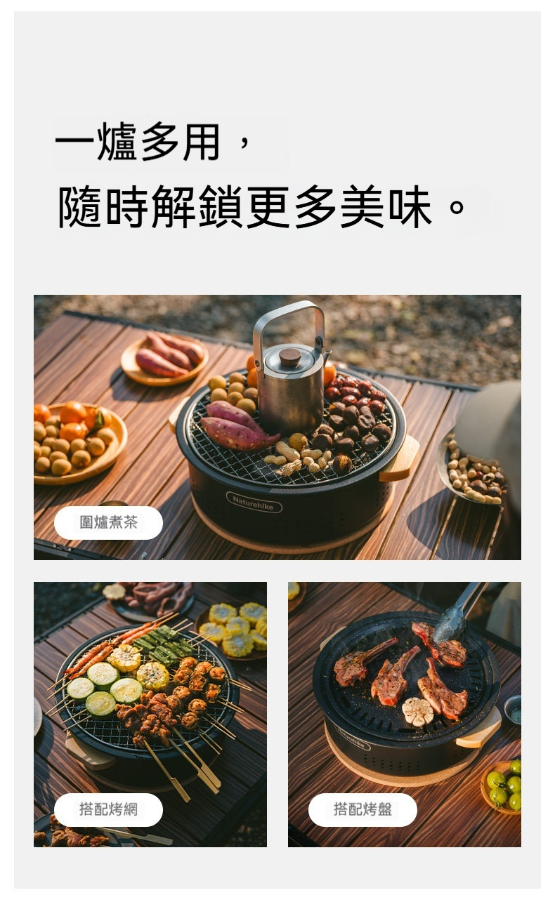 Buy Naturehike 墨煙 · 桌上型圓形燒烤爐(CNK2550CF010) - 黑色-烤網款 | 實木雙層安全隔熱 | 耐高溫炭盆 | 分體式設計 price in outletexpress .com Hong Kong.In promotion and sale.