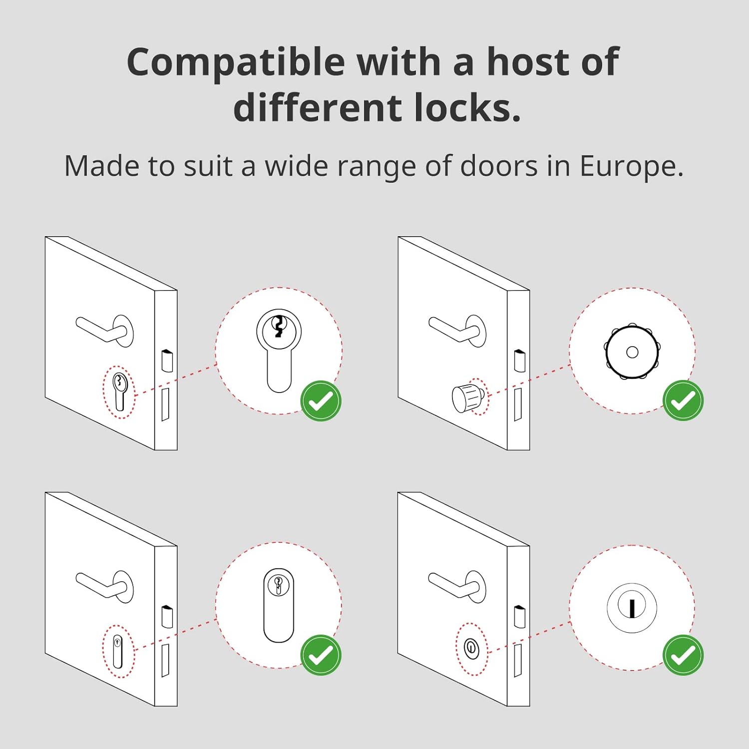 • 無需更換原鎖:獨特設計可直接安裝於大多數現有門鎖的內膽上,無需複雜更換或改裝,保留原有鑰匙功能。