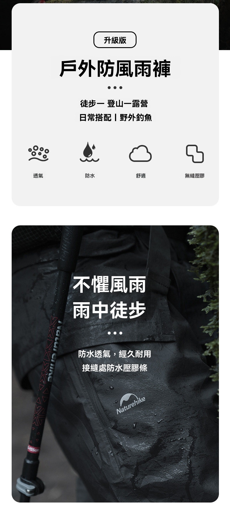 Naturehike 輕量化收納防風雨長褲 (NH21YJ003) - 黑色-M碼 | 荷葉式拒水 | 無縫壓膠 | 呼吸式複合面料