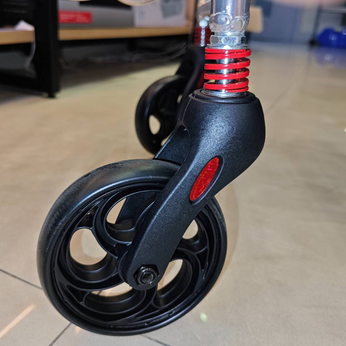 在前輸位置加入避震彈弓,減低過不平地面回彈