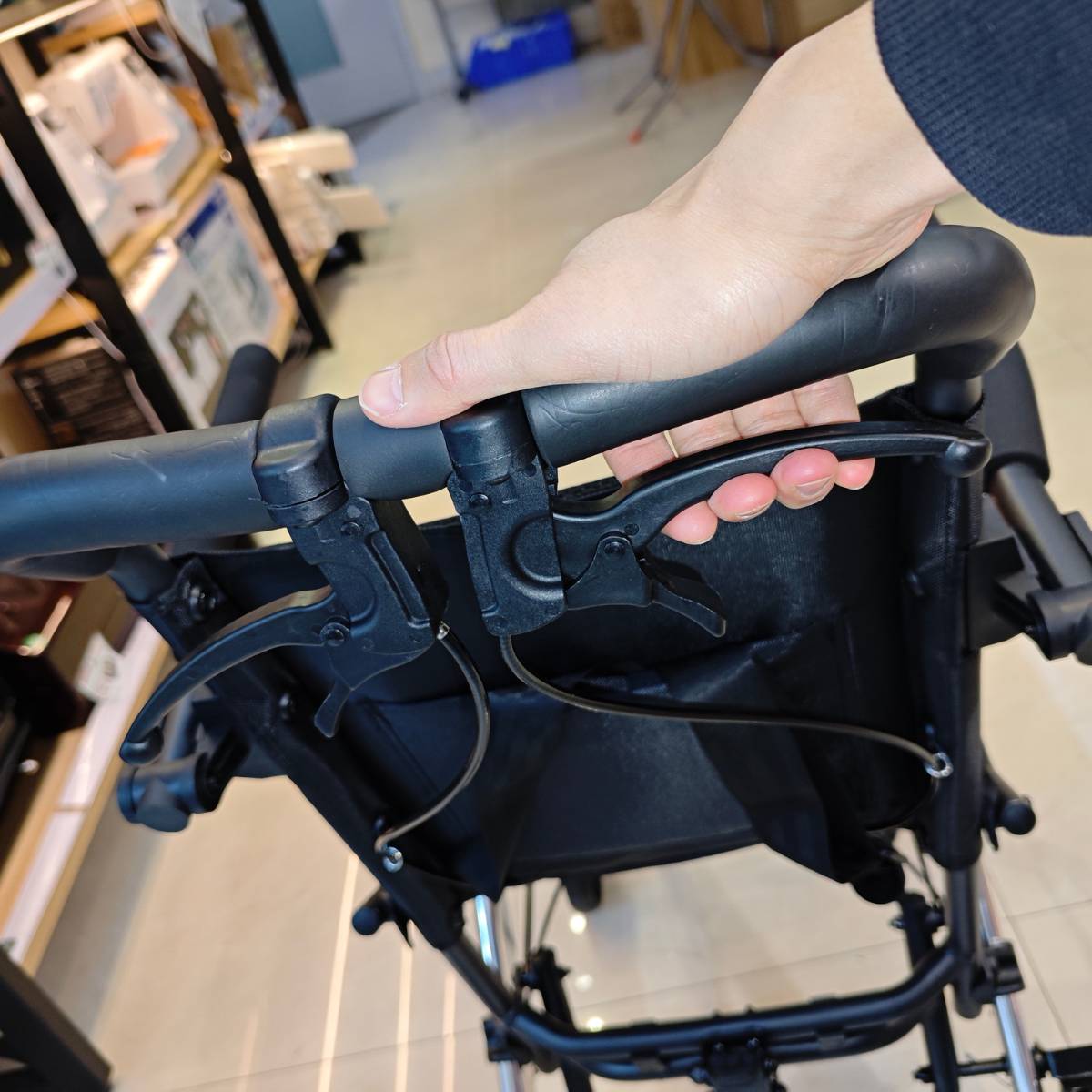 停車時夾起高手製就可以防輪椅溜後,解鎖只需扣下方拉製