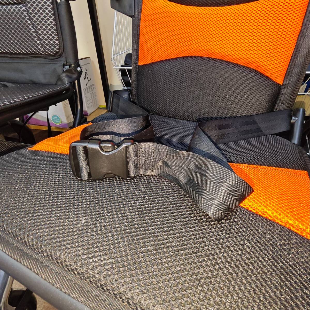 與一般輪椅一樣設有安全帶設計