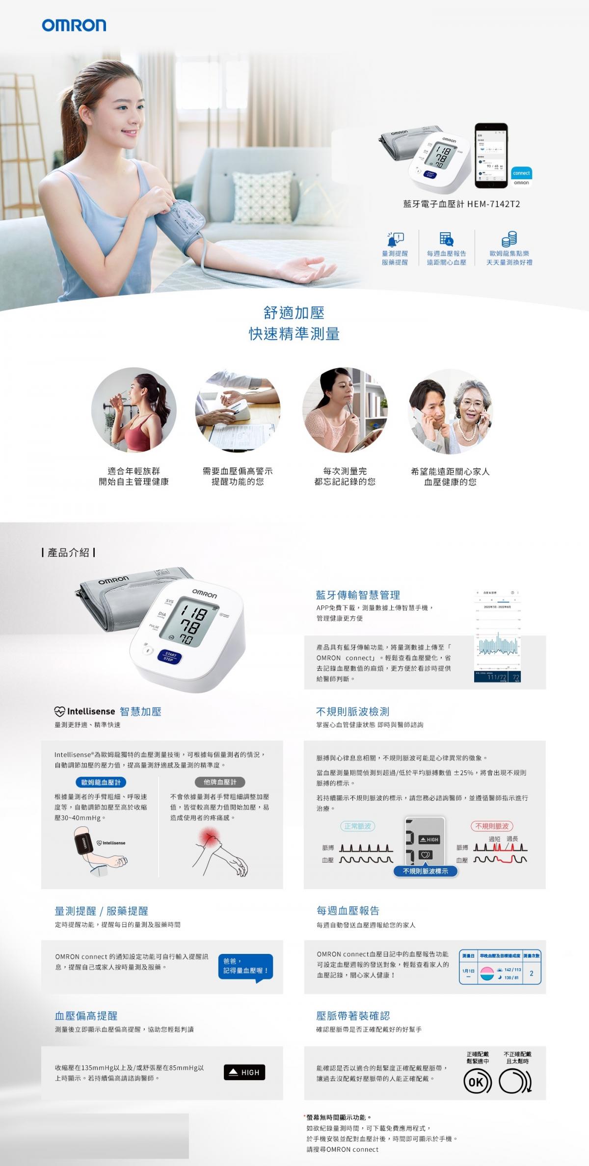 Buy OMRON HEM-7142T2 藍牙手臂式血壓計 - 白色 | 智能手機血壓日記 | 高智能加壓技術 | 心律不齊自動檢測 | 香港行貨 price in outletexpress .com Hong Kong.In promotion and sale.
