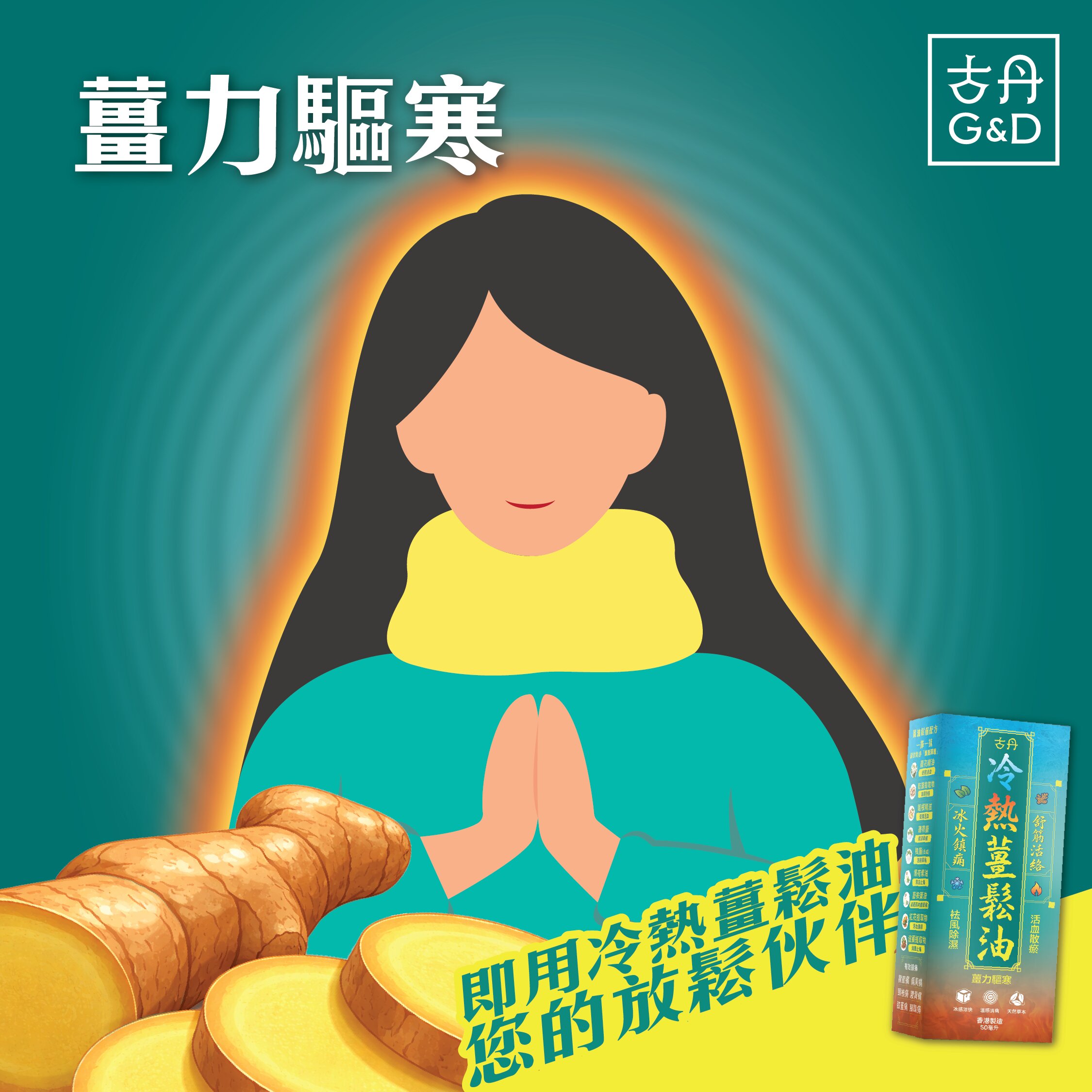 G&D 古丹冷熱薑鬆油 (50ml) 是一款成分天然、氣味清新的按摩油,結合薄荷與薑的雙重草本精華,能帶來先清涼後溫熱的舒暢感受。產品適合塗抹於肩頸、腰背、關節等不適部位,有效促進血液循環,舒緩肌肉痠痛及疲勞。它亦可應用於蚊蟲叮咬部位,有助減輕瘙癢。其清新不刺鼻、不黏膩的質地,適合運動後放鬆、日常保健,甚至能提神醒腦、舒緩頭部不適。產品於香港製造,是您隨時隨地為身體注入活力的理想之選。