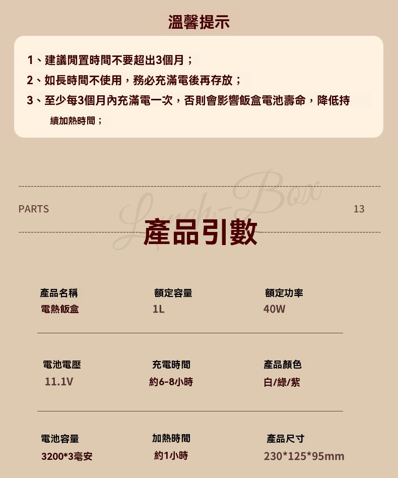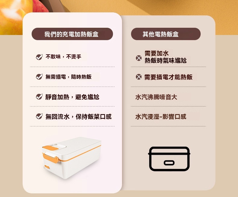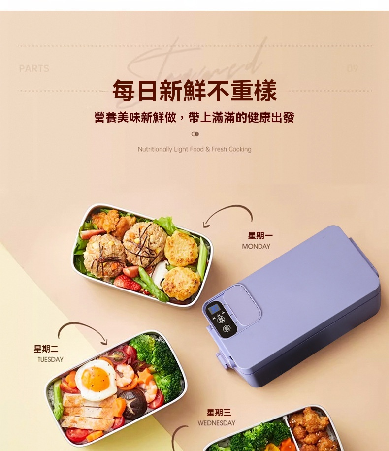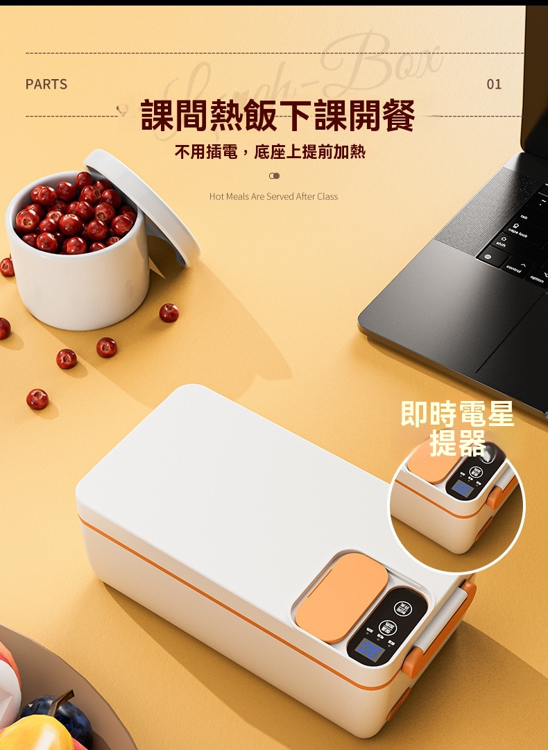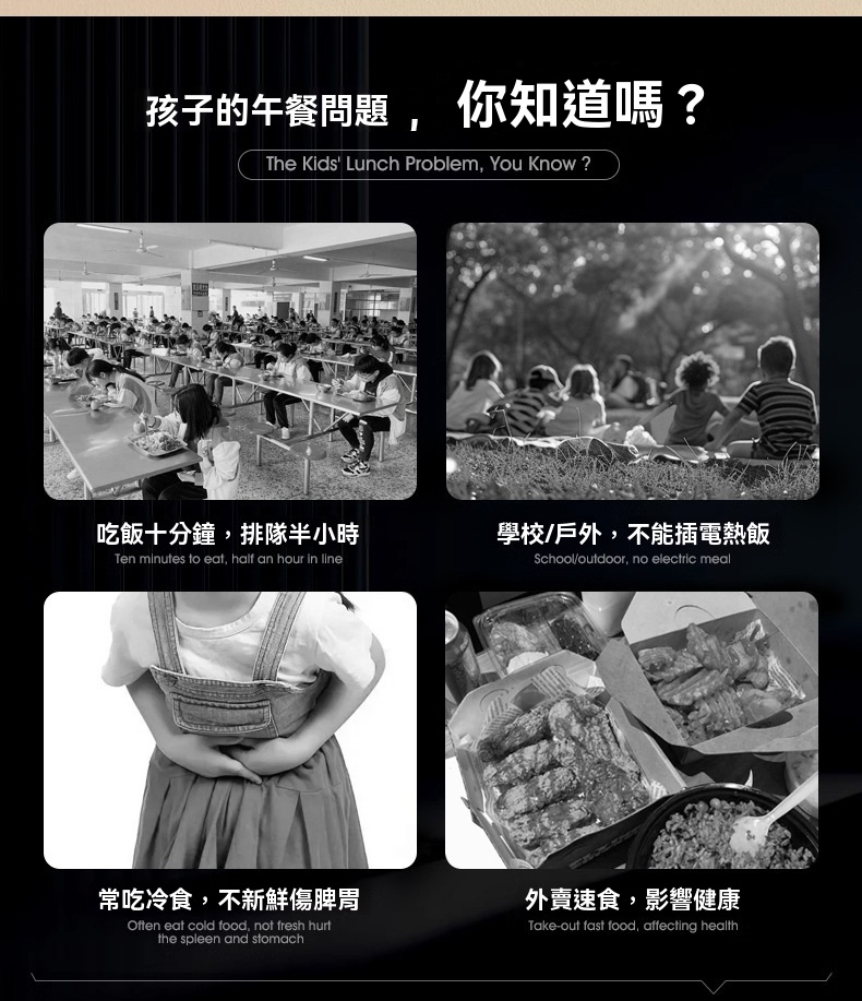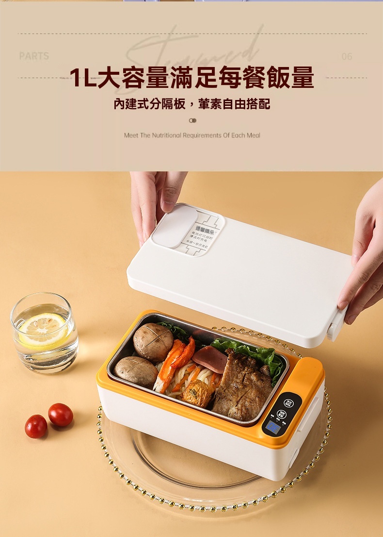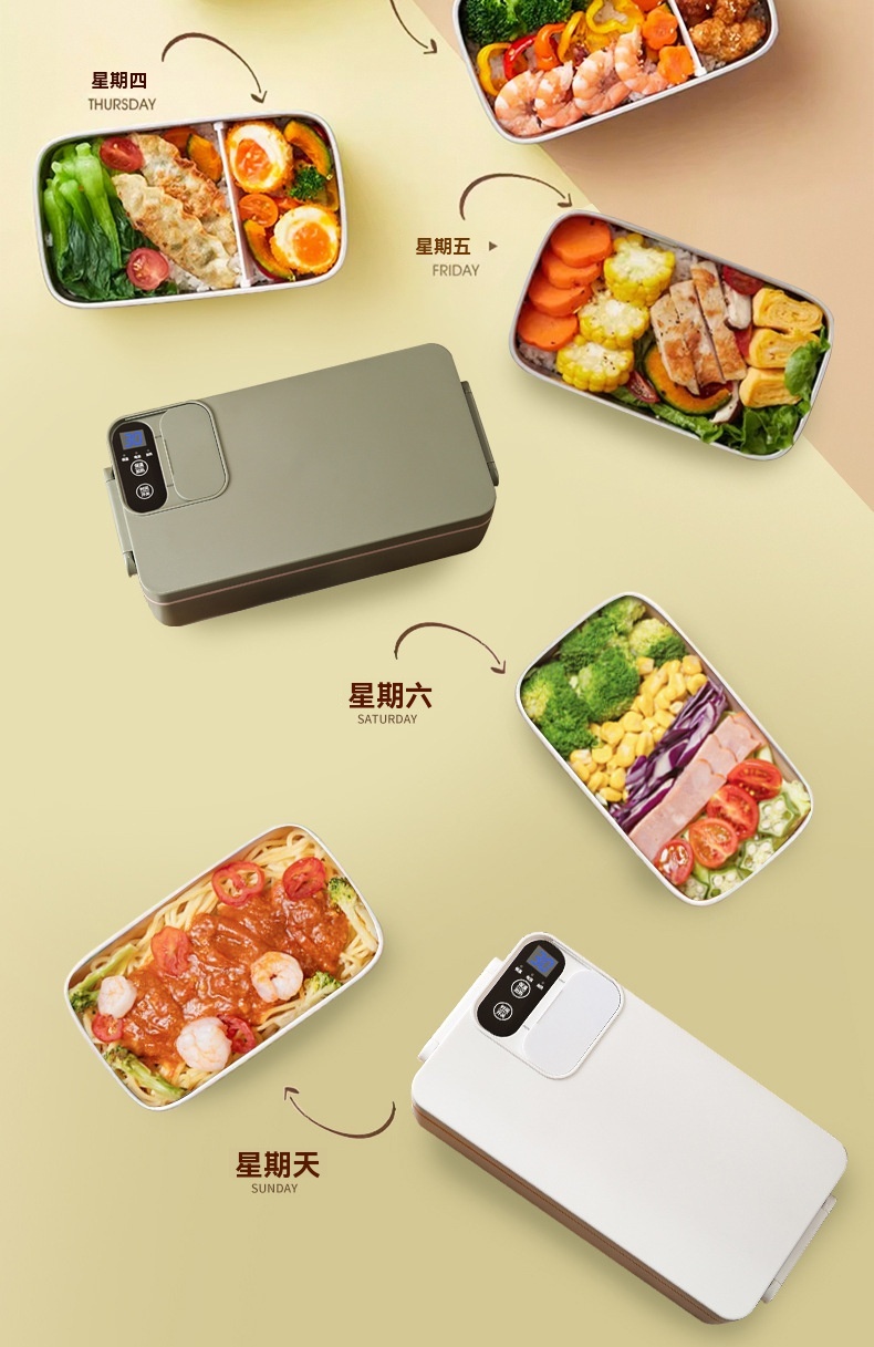 這款免插電智能電熱飯盒專為學生、上班族及戶外族群設計,解決無法插電加熱午餐的困擾。配備3200mAh高能電池與聚能發熱盤,無需加水即可立體加熱,一小時內讓飯菜均勻熟透,過程靜音且不燙手。產品具備6小時蓄冷保鮮能力,雙重密封防漏設計確保傾側不溢出。1L大容量搭配內建分隔板,方便葷素搭配。內膽採用304食品級不鏽鋼,易清洗且耐用。提供白/綠/紫三色選擇,外型精巧,附電源接口防水套與保護開關,使用更安心。