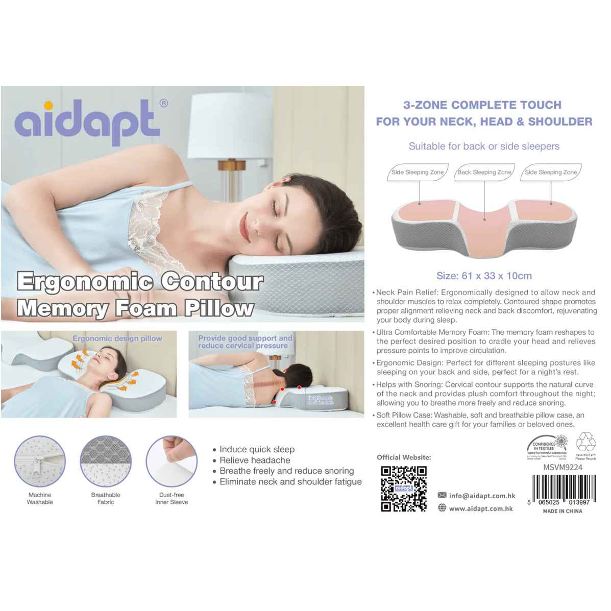 Buy Aidapt 愛意達 人體工學流線減痛護頸枕(白色)MSVM9224 | 有頭部支撐 | 頸部疼痛緩解 | 超舒適記憶海綿 | 香港行貨 price in outletexpress .com Hong Kong.In promotion and sale.