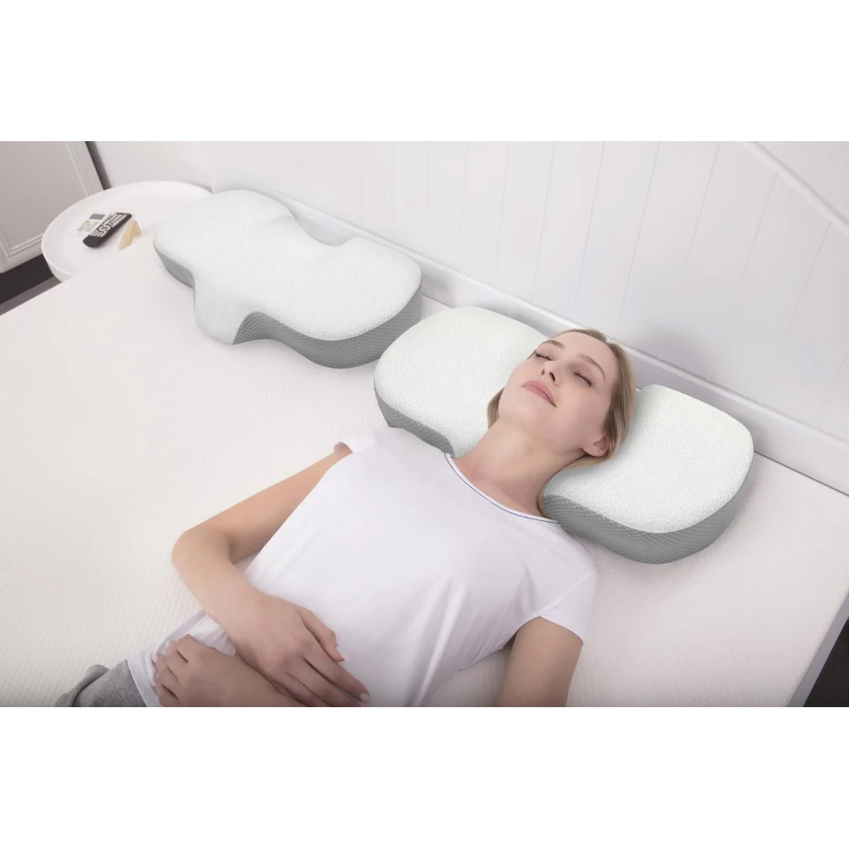 這款頸枕符合人體工程學設計,讓頸部和肩部肌肉完全放鬆,能緩解頸部疼痛。輪廓形狀促進正確對齊,緩解頸部和背部不適,在您睡覺時使您的身體恢復活力。