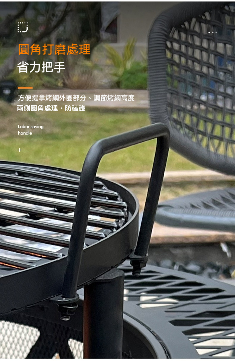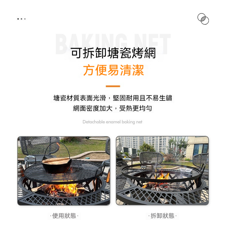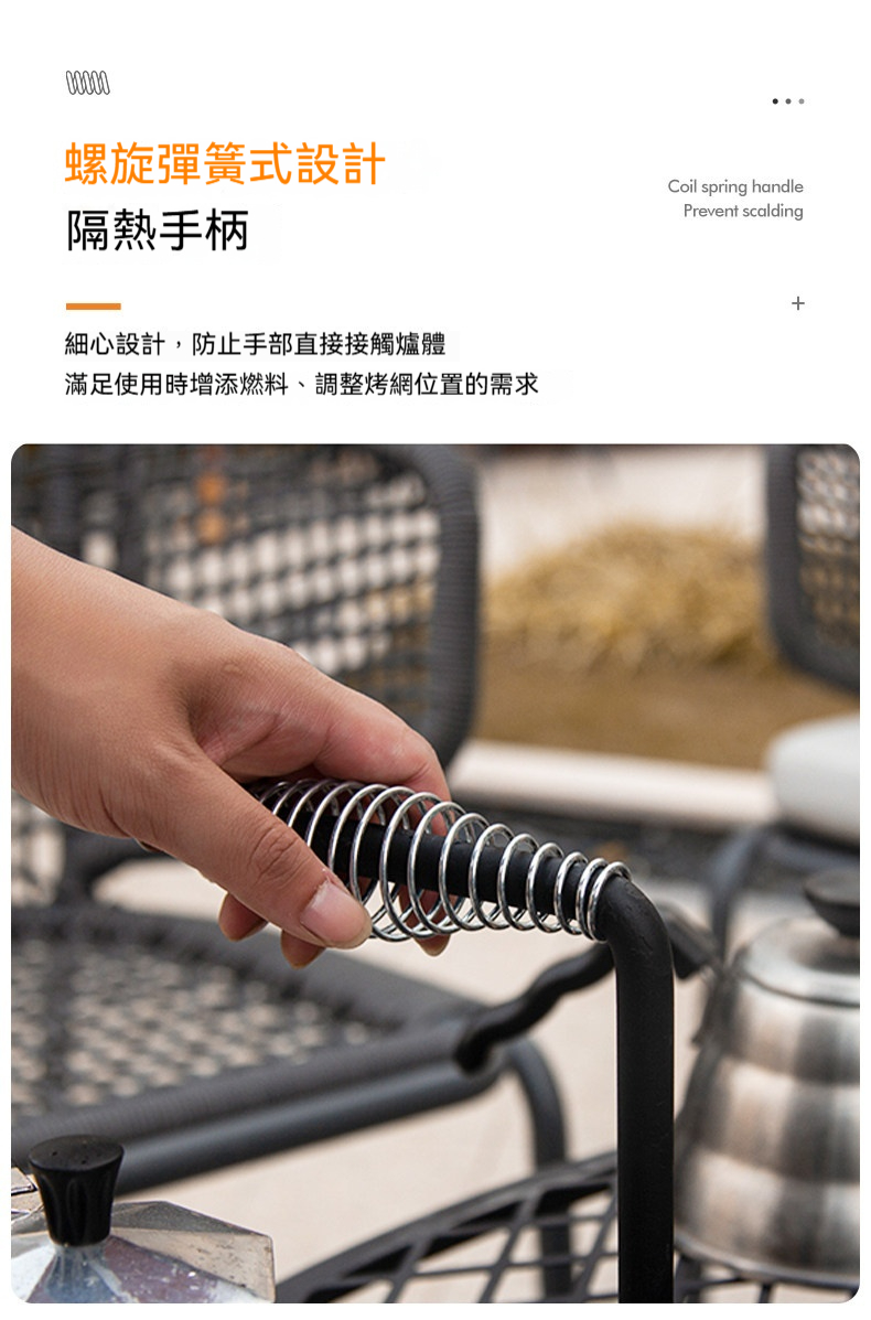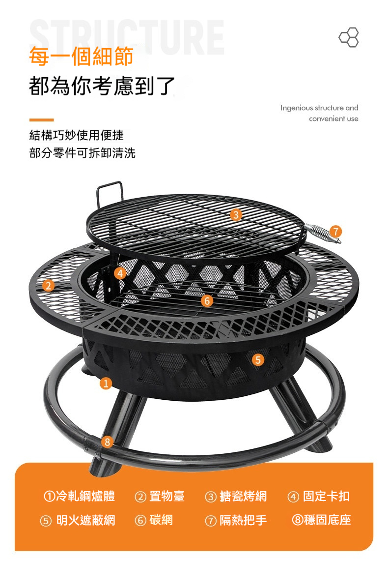 這款多功能取暖爐與燒烤爐集取暖、燒烤、桌子功能於一體,一爐多用,輕鬆切換不同形態。採用冷軋鋼爐體與搪瓷烤網,堅固耐用且易於清潔。360°環式供暖,四周均能供熱,告別傳統單面取暖。爐身設有四檔高度調節,滿足多種烹飪需求,無論戶外露營或居家圍爐,都能愜意享受。