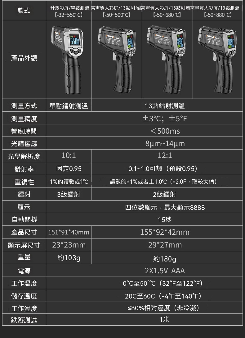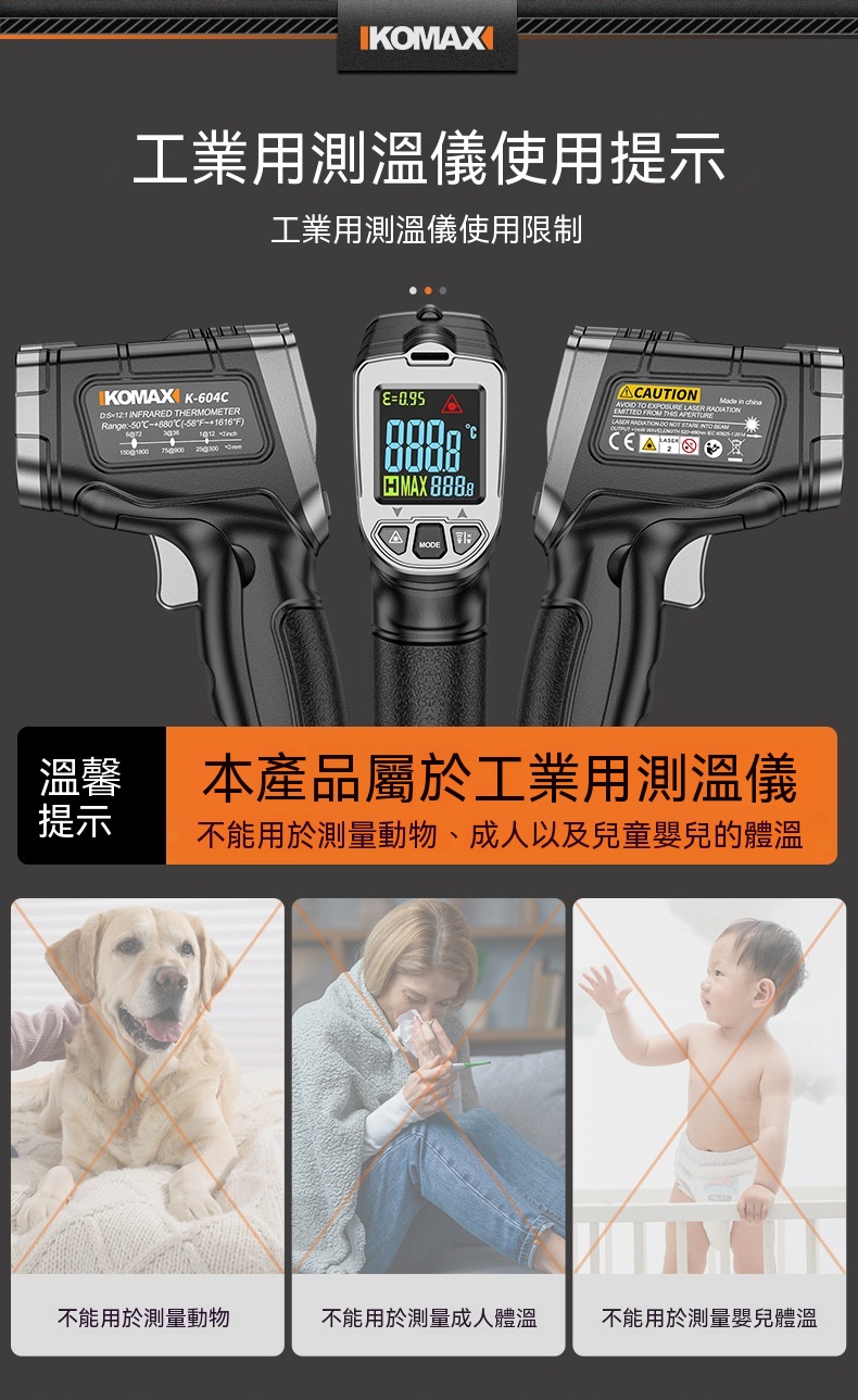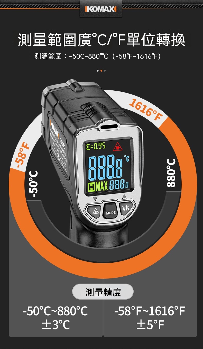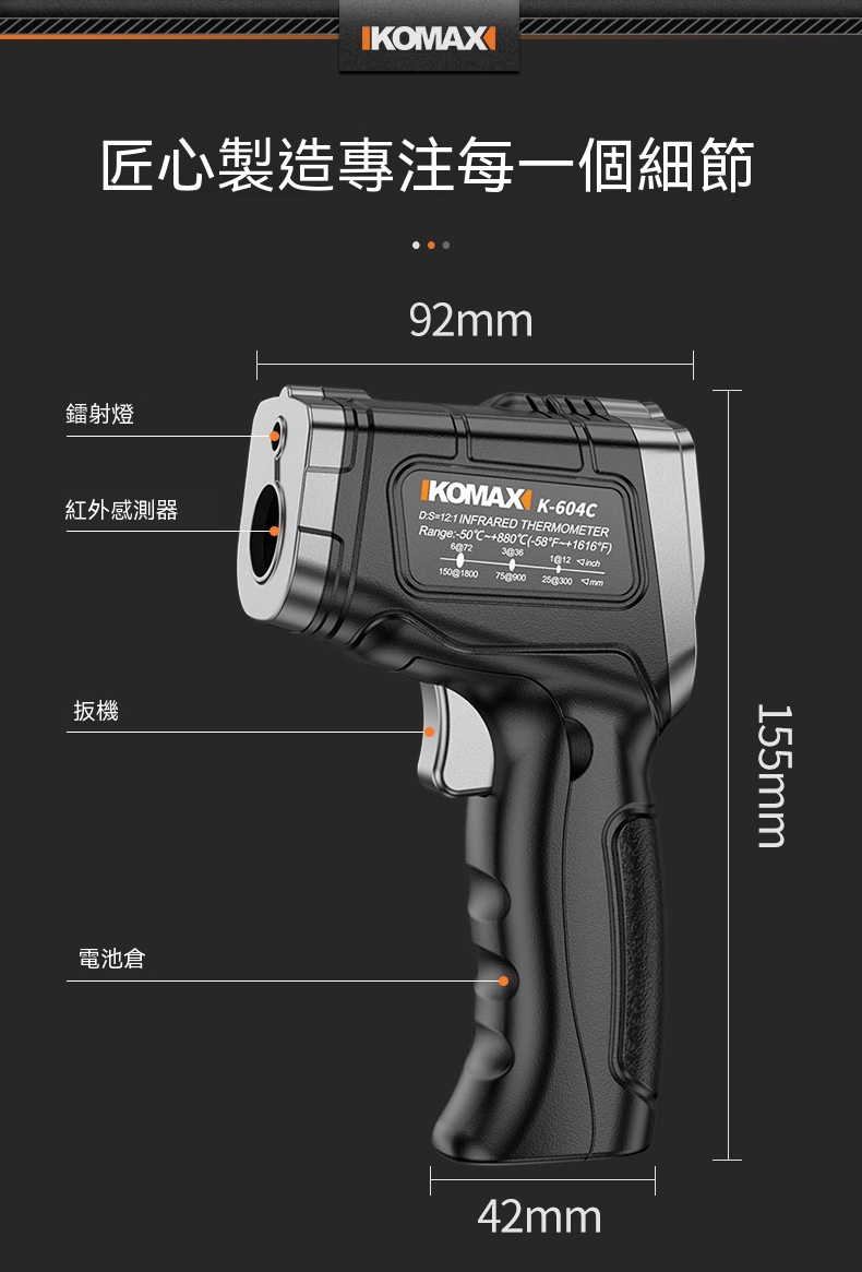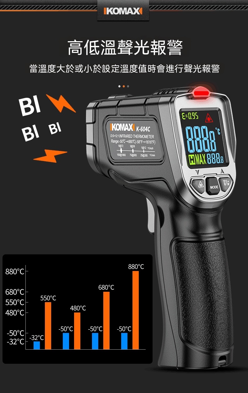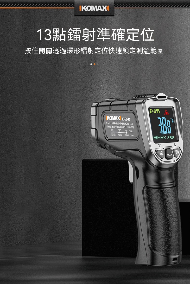 Buy KOMAX 光電感測紅外測溫槍 | -50~500°C溫度測量範圍 | 13點環形鐳射定位 | 0.5秒快速測溫 | 高低溫聲光報警 price in outletexpress .com Hong Kong.In promotion and sale.