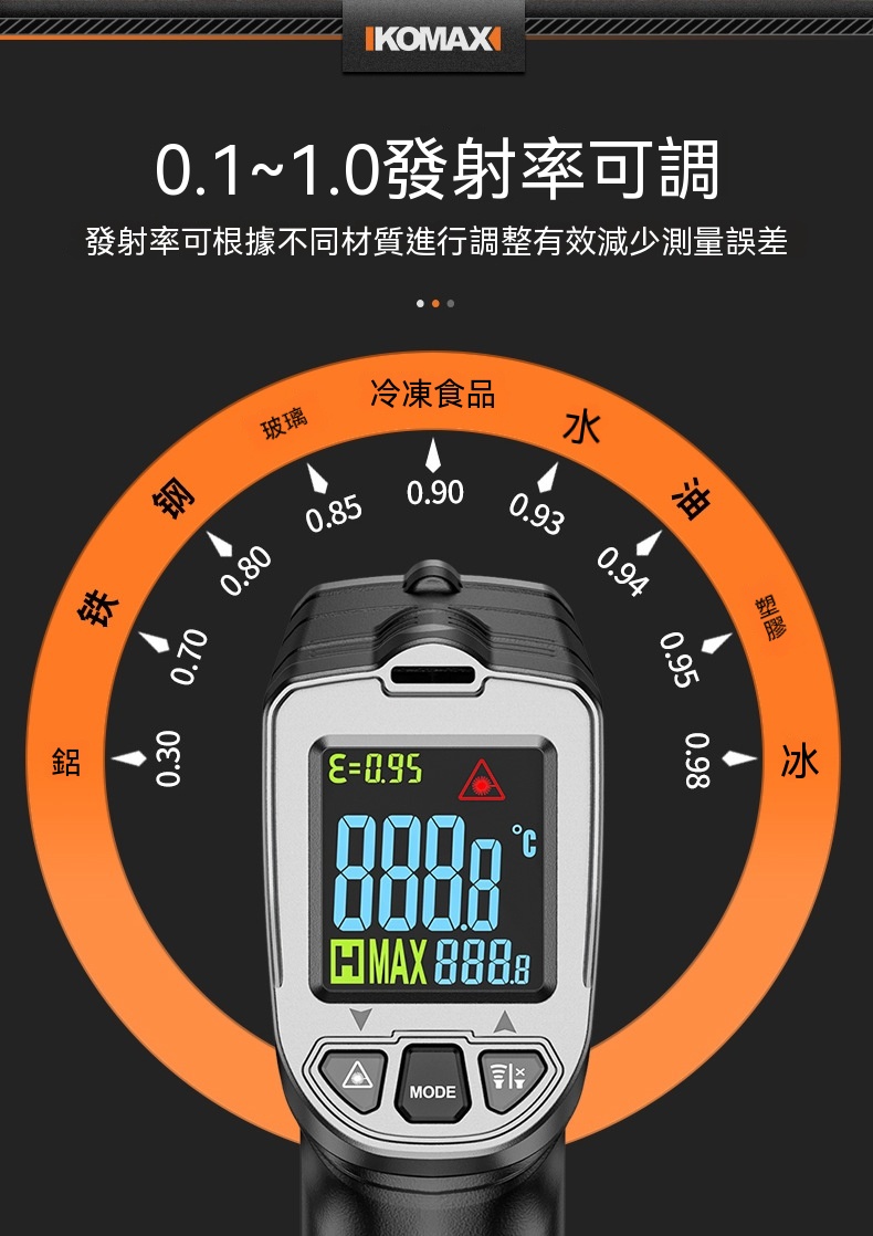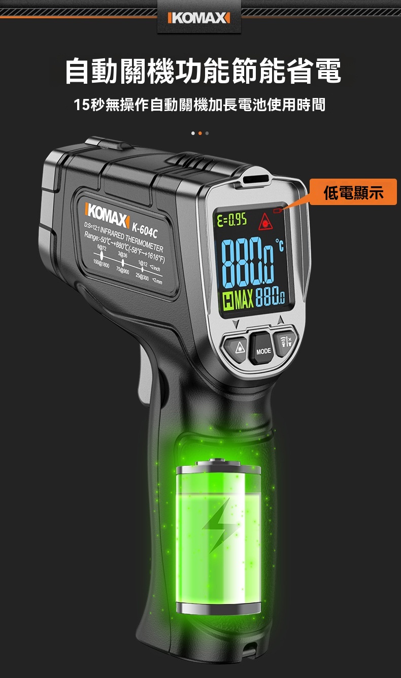 Outlet Express HK 生活百貨城在香港觀塘提供 KOMAX 光電感測紅外測溫槍 | -50~500°C溫度測量範圍 | 13點環形鐳射定位 | 0.5秒快速測溫 | 高低溫聲光報警 在那裡買邊到買或邊度買代理資料及價錢實惠借批發優惠以及公司學校報價,更可送到香港或澳門而部份產品比團購更優惠,更可以為你推薦推介相似產品及優點缺點,請留意我們最新產品價格更新。
