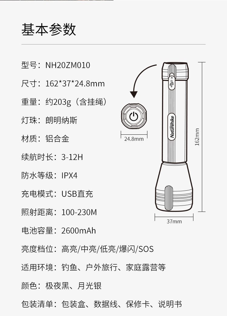 Buy NatureHike 星火強光充電手電筒 (NH20ZM010) | 多功能便攜露營強光燈超遠照明燈 - 黑色 price in outletexpress .com Hong Kong.In promotion and sale.